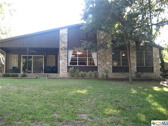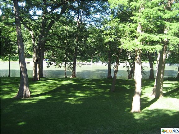 Wonderful waterfront to relax and enjoy. Park-like setting with mature Pecan trees and a gentle sloping terrain to the water. Large pie-shaped lot with 117' of waterfront.There is also a pier for swimming and fishing. Street-side has a circle drive to accommodate guest parking. Accent Flood Elevation in Docs that shows improvements are out of newest FEMA maps. No HOA and no city taxes. The house is large and roomy with a split bedroom design. The master bedroom, dining room and living room have views of the water. Two living areas one with rock W/B fireplace. This property can accommodate a lot of friends and family. Location is convenient to Interstate 10 and Interstate 35. All measurements and information should be verified by buyer.