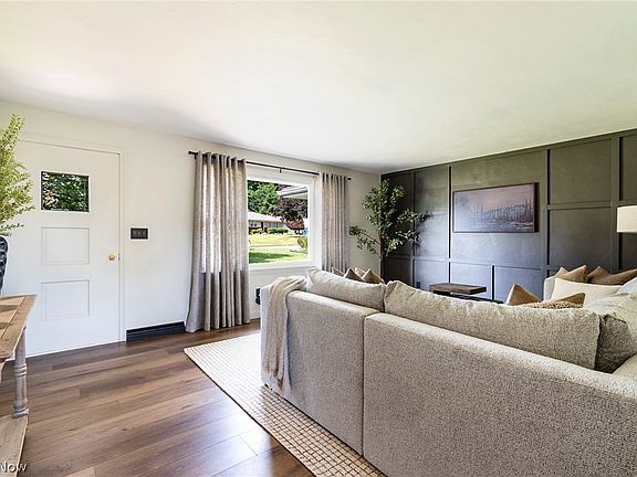 Welcome to your dream home! Nestled on a desirable corner lot in a sought-after neighborhood, this fully updated brick ranch is a must-see. As you walk through the front door, you'll be greeted by a warm and inviting family room, featuring a chic, modern grid accent wall that seamlessly flows into the stylish eat-in kitchen. The kitchen boasts brand-new cupboard doors, quartz countertops, and a sleek backsplash. Plus, the built-in sidebar offers extra storage and counter space, perfect for all your culinary needs.