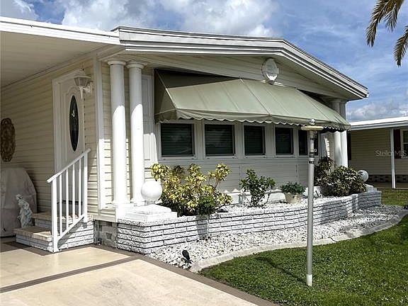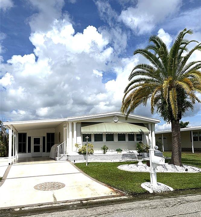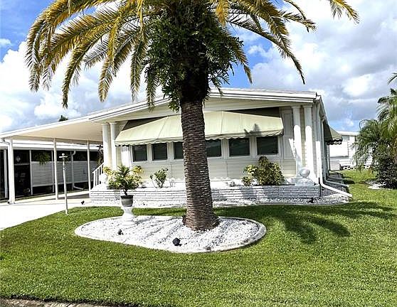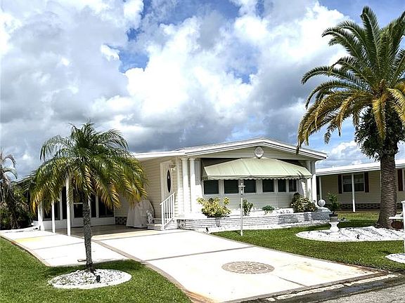 Nicely updated home in popular land owned Harbor Isles. Large ticket items including kitchen and both bathrooms have been updated. Open floor plan makes entertaining and casual living a breeze. Plenty of elbow room for visiting friends and family. Enjoy the large air conditioned Florida room, great for football parties, preparing libations, games, hobbies and more. The laundry area has direct access from the Florida room for privacy. No carpet, ceramic tile or laminate throughout. Both bedrooms have walk-in closets. The membrane roof was replaced in 2018, A/C 2022. This pet friendly, 55+ community boasts resort like amenities and activities that will keep you busy year round. Convenient to beaches, shopping, dining, Atlanta Braves ball field, downtown Wellen Park, interstate and airports. Call today for your private viewing.