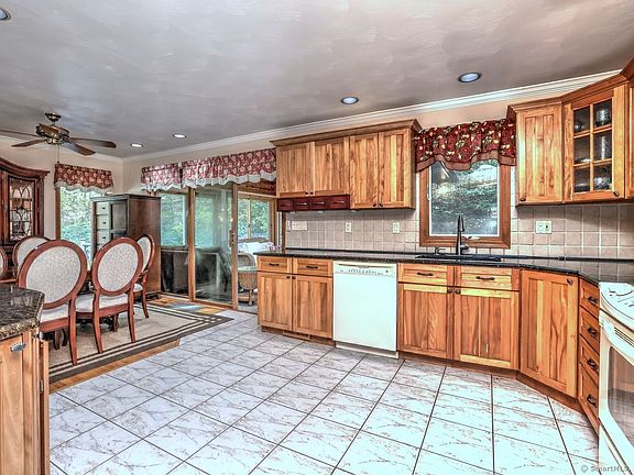 Don't miss this beautiful ranch-style home on 2.97 lightly wooded acres in the award-winning Amity school district. This home boasts 3 spacious bedrooms with ample closet space, 2 full bathrooms, and a primary suite with French doors to a private gazebo and hot tub. Enjoy an open floor plan with hardwood floors, an eat-in kitchen with granite countertops and tile backsplash, and stunning stone work with a wood stove in the living room. A bright, heated, sunroom with its vaulted ceiling, skylight, and tile flooring offers additional space for year-round enjoyment. A Trex deck off the dining room and sunroom provides the ideal spot for outdoor entertaining. Other highlights include a detached garage/shed with space for a car or additional storage, a two-car garage, and leaf guards on gutters. Enjoy the comfort, style, privacy, and natural beauty that this property has to offer. Convenient to Yale, downtown New Haven, and major highways. Don't miss it. Make your appointment today!