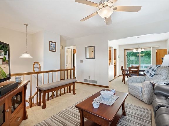 This meticulously maintained home is perfectly situated in a fantastic neighborhood, minutes from downtown or the airport. The open floor plan is awesome for entertaining family and friends. A two story tiled entry welcomes you into the spacious living room, open to the dining room. The large deck is conveniently accessed through the sliding glass door. You'll be impressed by the remodeled kitchen featuring quartz counters, maple soft-close cabinets, pantry, and stainless appliances. An updated full bath is accessed from the hall or through the owner's bedroom. Great closet space, neutral décor and quality carpet make the bedrooms nice & cozy! You'll LOVE the expansive finished game room with brick, wood-burning fireplace (this currently has an electric insert), powder room, and laundry room. READY for your Steeler parties! The low traffic street and walkable neighborhood with gazebo and playground make this the perfect place to call HOME. Newer roof, AC & water heater! SPOTLESS!