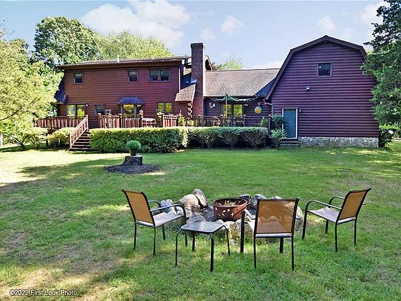 Where the forest meets the sea! Gorgeous, cozy log home situated on very private and manicured 1.97 acres in quiet South Tiverton/Adamsville Farm. Amazing mature perennial gardens and park-like grounds. This meticulously maintained home has 4 bd, 2 bth, 2,641 sq ft with beautiful designer kitchen and dining area, updated baths, huge bonus room over garage, large 1st floor bd with den & massive soaring beamed ceilings in great room. New central AC mini-splits in 2020. Wood stove in great room keeps home warm all winter; save on heating costs! Vaulted ceilings in primary bd with his & her walk-in closets. Numerous updates and high-end finishes throughout: hammered copper farmhouse sink, quartz countertops, dual-fuel double oven range, copper gutters & more. Large wood shed, dog pen, and 2nd over-sized 2-level shed for all your lawn equipment, and summer furniture storage. Oversized 2 car garage for your extra tools or toys. Abundant storage throughout. Freshly stained exterior & decks. Entertain on the huge 55’ rear deck overlooking lg yard, fire pit, with cedar, oak and holly woodlands. Abundant wildlife! Private drive and great curb appeal. A truly special property located 5 mins. to Little Compton, RI, Westport, MA and Tiverton 4 Corners! Nearby walking trails, beaches, marinas, and Westport and Sakonnet Rivers. Perfect yr-round family or vacation home! A Must See property! Subject to Seller finding suitable housing. *Front lawn photos retouched*
