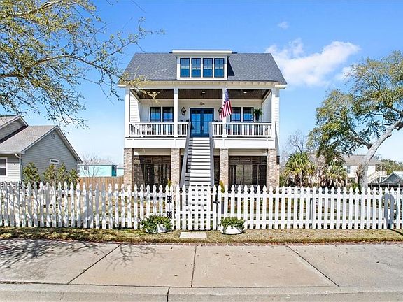 This recently built raised house, perched on a 1-acre lot, offers an idyllic retreat in a charming coastal golf cart community, just steps away from the beach and downtown Pass Christian. Walk inside to discover a thoughtfully designed open floor plan, spanning 2670 sq.ft. of exquisite living space. The living room welcomes you with warmth and functionality, featuring a fireplace plus two built-in dog kennels nestled under the stairs. The heart of the home is the kitchen, complete with an island/breakfast bar, and dining area, perfect for gathering and entertaining. A large pantry ensures ample storage space. Retreat to the luxurious primary suite on the first floor, where the cathedral ceiling creates an atmosphere of spaciousness and serenity. Primary bathroom includes his & hers walk-in closets, a dual head shower, a sumptuous soaking tub, and two vanities. Upstairs, discover three additional bedrooms and two baths, offering versatility and privacy for family and guests alike. Two spacious porches beckon for outdoor enjoyment, with trex decking ensuring durability and easy maintenance. The side porch is screened, providing a tranquil oasis to savor the coastal breeze. Elevate your lifestyle with added conveniences, including a lift for easy access, and a whole house generator. Embrace the coastal lifestyle to its fullest, with easy access to the yacht club, harbor, restaurants, shops, and parks, all just a short golf cart ride away. Don't miss the opportunity to make this coastal retreat your own. (A floor plan and features list are in Attachments.)