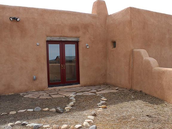 Make it your own! This bright and airy 2 bedroom / 2 bath southwest-style home sits on 1 level acre in beautiful Ranchos de Taos. Gorgeous mountain views, french doors front and rear, Kiva fireplace, Viga ceilings, scored concrete floors, and custom tile work in the kitchen and both bathrooms. The oversized master bedroom includes a walk-in closet. Large courtyard offers privacy and Taos charm.