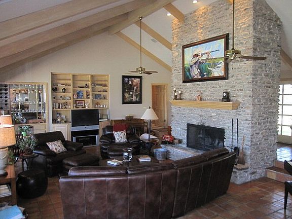 Outstanding estate home on 5+ groomed acres, river frontage. 3700+ sq.ft. home is nestled toward the back of the property affording privacy & great views of hills, coastal field & in-ground pool. Traditional hill country style rock exterior. Inside, the home has an excellent layout with split bedrooms, sunken living room with floor to (vaulted) ceiling rock fireplace, kitchen with Corian & tile