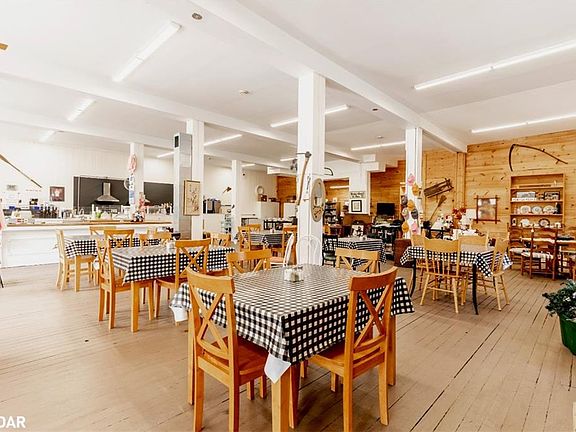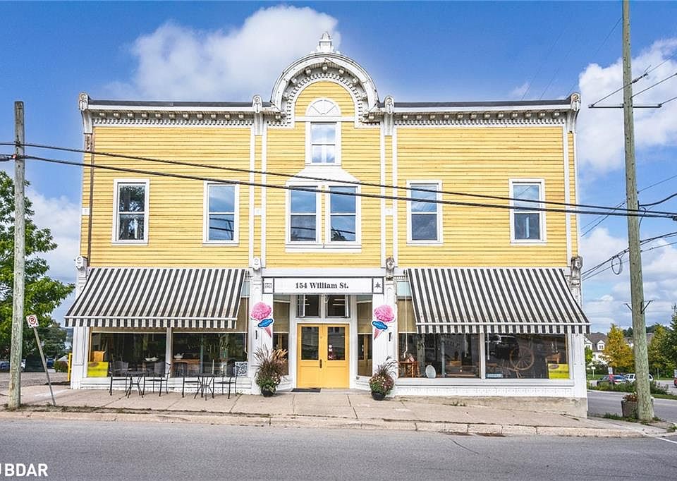 VICTORIA HARBOUR LANDMARK WITH 5 RESIDENTIAL UNITS, A LARGE COMMERCIAL SPACE, & INCREDIBLE INCOME POTENTIAL! Discover a truly rare opportunity in the heart of Victoria Harbour with this landmark offering over 10,300 sq ft of space, multiple self-contained units, and an absolutely adorable cafe. This property features five separate living accommodations, plus a nearly 2,900-square-foot cafe with soaring 13-foot ceilings, rustic wood accents, two washrooms, and a warm, inviting atmosphere perfect for dining, retail, or boutique-style business use. The spacious, open-concept four-bedroom apartment impresses with a massive kitchen island, wood-toned cabinetry, stainless steel appliances, and a layout that opens to expansive living and dining areas featuring rustic wood flooring, pot lights, large windows, and tasteful, antique-inspired finishes, balanced by a timeless, neutral palette. The primary bedroom is generously sized, while the additional three bedrooms are cozy and welcoming, all complemented by two full bathrooms, abundant storage, and an unfinished space offering a blank canvas to suit your needs. Two one-bedroom apartments on the main level and two bachelor apartments in the lower level create multiple potential income streams, giving the option to live in one unit while renting the others. With flexible C1 zoning that allows for a wide range of uses including retail, restaurant, offices, craft shop, and hospitality, combined with steady local traffic and seasonal tourist activity, this property offers prime income potential for investors, business owners, or those looking to operate an Airbnb or bed and breakfast, all just moments from Georgian Bay’s waterfront, scenic trails, parks, and local amenities.