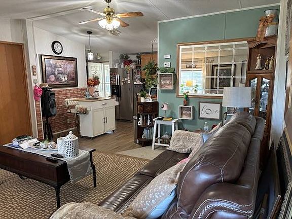This cozy, move-in-ready gem offers everything you need to start living your best Florida life! Homes in Kings Pointe, a pet friendly, 55+ community are on lot leased land in Lake Alfred, Florida. Owning the home, but not the land, you pay a monthly lot rent of $740.00 which gives you and your guest access to the amenities of the community. Awaiting your arrival is a delightfully unique, fully furnished, and beautifully decorated turnkey home-perfect for the snowbird ready to escape the cold, dreary Northern winters or for anyone longing to embrace the year-round sunshine and carefree Florida lifestyle. This charming, easy-to-maintain home has been thoughtfully updated, featuring a new roof (2025), new hot water heater (2020), AC (2021), modern electric smooth-top range, refrigerator with ice and water dispenser, built-in microwave (2024), and stylish vinyl plank flooring in the kitchen, guest bedroom, and bath-giving you more time to relax and enjoy life under the palms. (Please note: a few decorative items shown in the photos are not included-see agent for details.) Designed for comfort and privacy, the home offers a split-bedroom layout with two spacious ensuite bedrooms, each featuring walk-in closets. The primary suite includes a step-in shower and vanity with ample under-sink storage, while the guest suite boasts vinyl plank flooring, a large vanity with open and closed storage, and an additional wall cabinet for linens and towels. Step outside to the inviting 10x12 screened lanai, overlooking the vibrant, artfully designed driveway-the perfect spot to enjoy your morning coffee or evening breeze. For extra comfort and privacy, the lanai is enclosed with clear polycarbonate panels and includes a portable AC unit for year-round enjoyment. To top it all off, there's a 7x7 utility shed conveniently located near the rear entrance-ideal for stowing away tools, holiday décor, or those "once-in-a-while" items. The Clubhouse is just a couple of doors up the street where you can take advantage of the many choices that abound at Kings Pointe, which is an active community where you can enjoy the activities and amenities provided at the community including the heated pool & hot tub, Bocce Ball, Corn Hole & Shuffleboard. Indoor activities include various card games, Bingo, Billiards, Ping Pong, Darts and holiday meals. Going in the other direction of your street, next to the boat and RV storage area is another option for you is to walk down the concrete pathway to Lynchburg Road, crossing over to Windsor Avenue, ending up at the Kings Pointe dock on the shore of Lake Marianna where you can throw in a fishing line, have picnics or watch the beautiful sunsets. There are lots of choices for you. Central Floridahas so much to offer. Contact the listing agent today to schedule your private showing and see why this unusual Kings Pointe gem is the perfect place for you to call home. All prospective residents must be approved by community management prior to purchasing a home. All listing information is deemed reliable but not guaranteed and should be independently verified through personal inspection and by appropriate professionals. This home is sold "as is." Accuracy of the information and the condition of the property are not warranted or guaranteed. The buyer is responsible for verifying all current lot rent, fees, and pass-on costs directly with the community or park management. The listing agent is not responsible for quoting or confirming these fees.