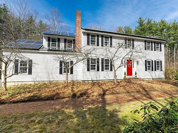 Nestled in a serene setting, this meticulously maintained 4-bedroom home offers the perfect balance of privacy and convenience. Just minutes from shopping and restaurants, yet located in a quaint Hollis location. The property, which is on a generous 3.76 acres and even has its own small pond, features a welcoming naturally heated sunroom as you walk in where you can relax year-round, soaking in the beauty of nature around you. Inside the home every detail has been thoughtfully designed, from the hidden Sub-Zero refrigerator and Bosch dishwasher, to the chefs delight Jenn-Air wall oven and induction cooktop, ideal for gourmet cooking. A bonus room upstairs is perfect for your home office, library, or playroom needs. Updates galore throughout the house including a stunning tiled shower off the primary bedroom, cedar lined walk-in closet, 2nd floor laundry, large deck overlooking the pond, new granite front steps, even Swarovski crystal sink handles in the full bathroom! The home also has owner-owned solar panels with electric heating and air conditioning mini splits in the house — which significantly reduce your electric costs— so you can experience minimal to no electric bills and fuel bills! What more could you want? OPEN HOUSE SAT. 4/5 11am - 3pm! Showings start Friday 4/4.