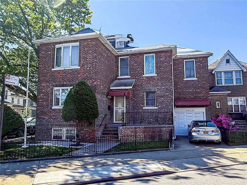 Spacious Detached Brick Home in the Heart of Flatlands! Welcome to this extra-large one-family home perfectly situated on the corner of Flatlands Avenue and East 45th Street. This fully detached brick property offers incredible space, light, and comfort in one of Brooklyn’s most convenient neighborhoods. Enter inside to find a generous first floor featuring a bright and airy living room, a formal dining room, and a large kitchen—perfect for entertaining and everyday living. A convenient half bath completes this level. Upstairs, you’ll find three oversized bedrooms, a full bathroom with a separate shower, and a converted balcony sunroom. The home is filled with natural light from three exposures. Hardwood floors throughout a whole house. The full finished basement offers even more space and includes second large eat-in kitchen, laundry room, and plenty of room for recreation. There is a separate entrance to the basement. Additional highlights include a private one-car garage, a carport, and the benefit of a fully detached structure, offering extra privacy and curb appeal. The home is in good overall condition and ready for its next owner to make it their own. Don’t miss this rare opportunity to own a spacious and solid home in a great location—schedule your private showing today!