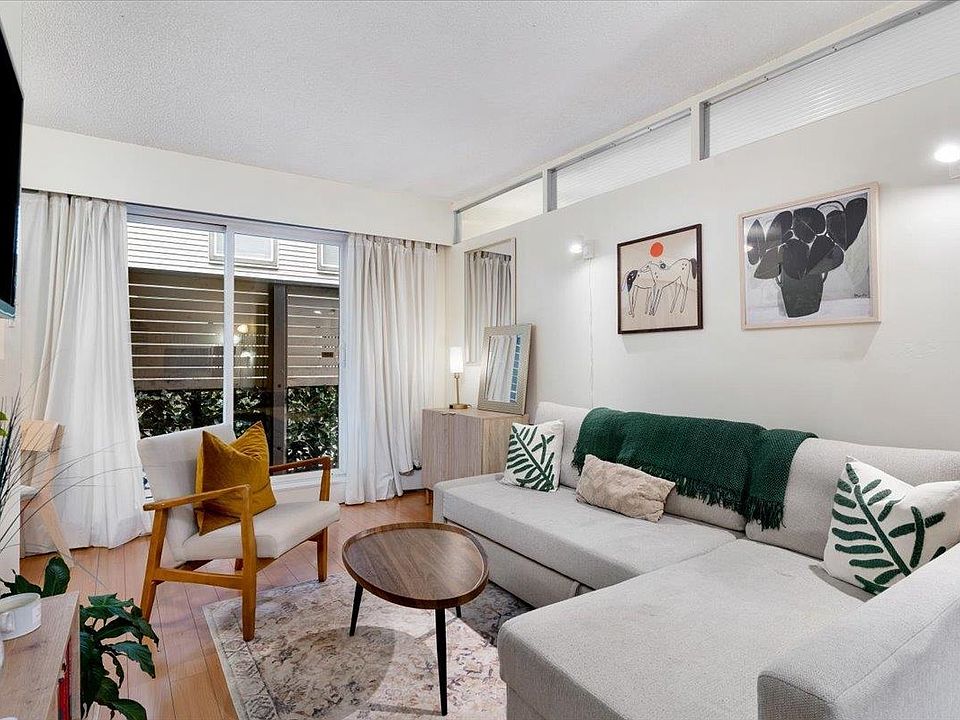 Fall in love with the outdoor space at this 1-bedroom garden-level home featuring a spacious wraparound patio, in one of Vancouver's most desirable neighbourhoods. Set in a 12-unit building, this NW corner suite is tucked on a quiet, tree-lined street just off Commercial Drive. Inside, you'll find updated laminate flooring, a new electrical panel & dishwasher, plus a refreshed bathroom. Shared laundry just across the hall - a communal garden - as well as one parking stall and a storage locker! Enjoy a walkable lifestyle close to cafés, markets, parks, and Trout Lake. Transit is a breeze with easy access to the Millennium and Expo SkyTrain lines. Building updates include newer siding, windows, & doors. Pet & rental friendly. Enjoy East Van living in the heart of The Drive!