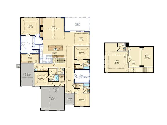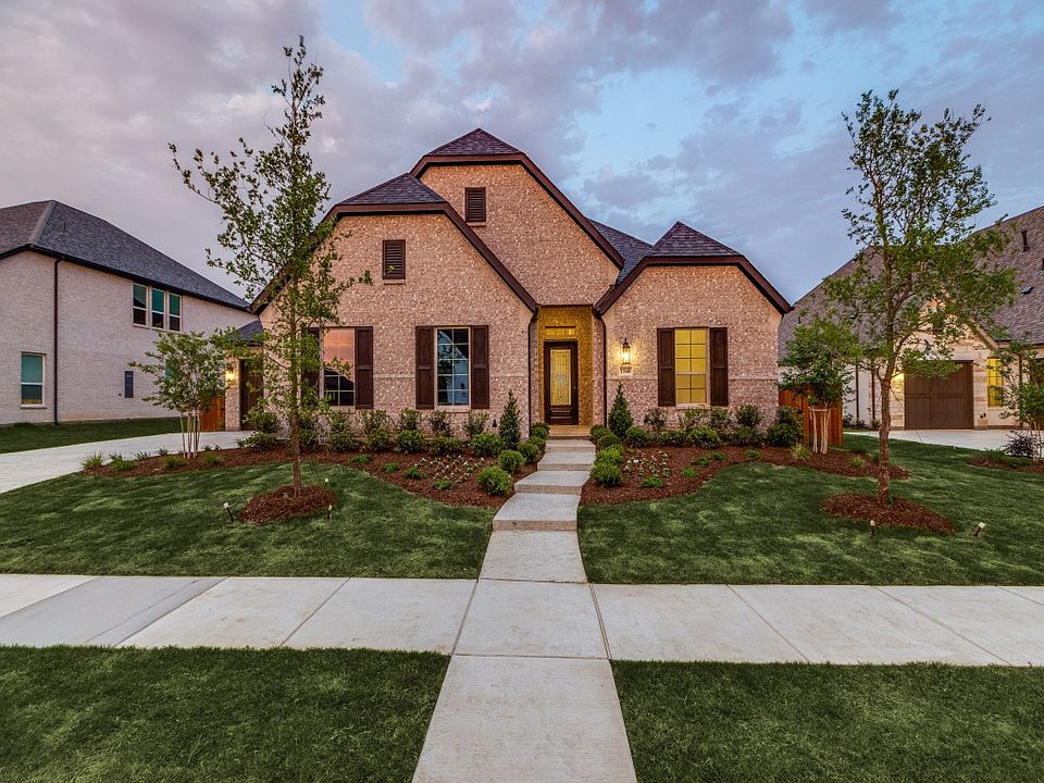 RISLAND HOMES HENRY floor plan. READY NOW! One-and-a-half story home with all bedrooms down and Media-Game up. Fit for a King and Queen on an oversized lot that is walking distance from the new Elementary school within the community. Gorgeous cream brick and beautiful elevation details for stunning curb appeal. Spacious and wide entry hall is ready to decorate and greet your guests with style. Stunning Hardwood floors are throughout the common first floor areas. All 4 bedrooms have ensuite baths for privacy, with a separate half-bath for visitors. Work from home in your Study with glass French doors just off the entry hall. Entertain around your massive island in the Gourmet Kitchen with Stainless KitchenAid appliances, offering endless inspiration making everyday meals easy and cleanup a breeze. Includes Morning Kitchen with second sink adjacent to the main kitchen for a prep area. Relax in the Family Room featuring vaulted ceiling with wood beam, get cozy by the fireplace, and enjoy the natural light from the eight-foot telescoping sliding glass doors to enjoy the oversized covered patio, great for lounging and backyard BBQ’s. Reenergize mind, body, and soul in the Owner's retreat, with a spa-like experience in the Super Shower with rainfall showerhead. Dress up or down for your day in the oversized walk-in closet! Where is the popcorn? Head upstairs to the dedicated Media-Game room to enjoy a movie night or game night with family and friends or host the big game day party in the fantastic media room! The three-car garage includes 220V to keep your EV charged up for when you’re ready to head out exploring! New Prosper ISD Elementary school is located within the community now OPEN! Enjoy amenities with clubhouse, infinity pool, work out room, yoga lawn, playground, pond and walking trails. See this home any time dawn to dusk with the NTER NOW system!