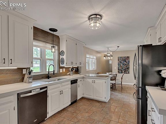Nestled on a private 0.64-acre lot surrounded by towering pines, this beautifully updated two-story home offers the perfect blend of tranquility and convenience—now vacant, refreshed, and ready for its next chapter at a new price. Step inside to find vaulted pine ceilings, a striking brick fireplace, and a warm, inviting atmosphere that captures the essence of Colorado living. The remodeled kitchen features crisp white cabinetry, concrete counters, and stainless-steel appliances, all flowing seamlessly into the dining area—ideal for everyday meals or gatherings with friends. The primary suite lives like a retreat, complete with a private deck for morning coffee among the trees. Outdoors, over 1,000 sq. ft. of newly stained redwood decking wraps around the home, creating an incredible space for entertaining, relaxing, or watching kids explore the wooded yard. The finished basement adds valuable flexibility with a spacious family room, guest suite, and private office—perfect for working from home or hosting overnight visitors. A main-level guest room and laundry add everyday convenience. Tucked away yet just minutes from Monument’s highly rated District 38 schools, shopping, and dining, this home delivers a true Colorado lifestyle—peaceful, private, and perfectly located. **Now vacant and easy to show—don’t miss the opportunity to make this move-in-ready mountain-feel retreat your own!**