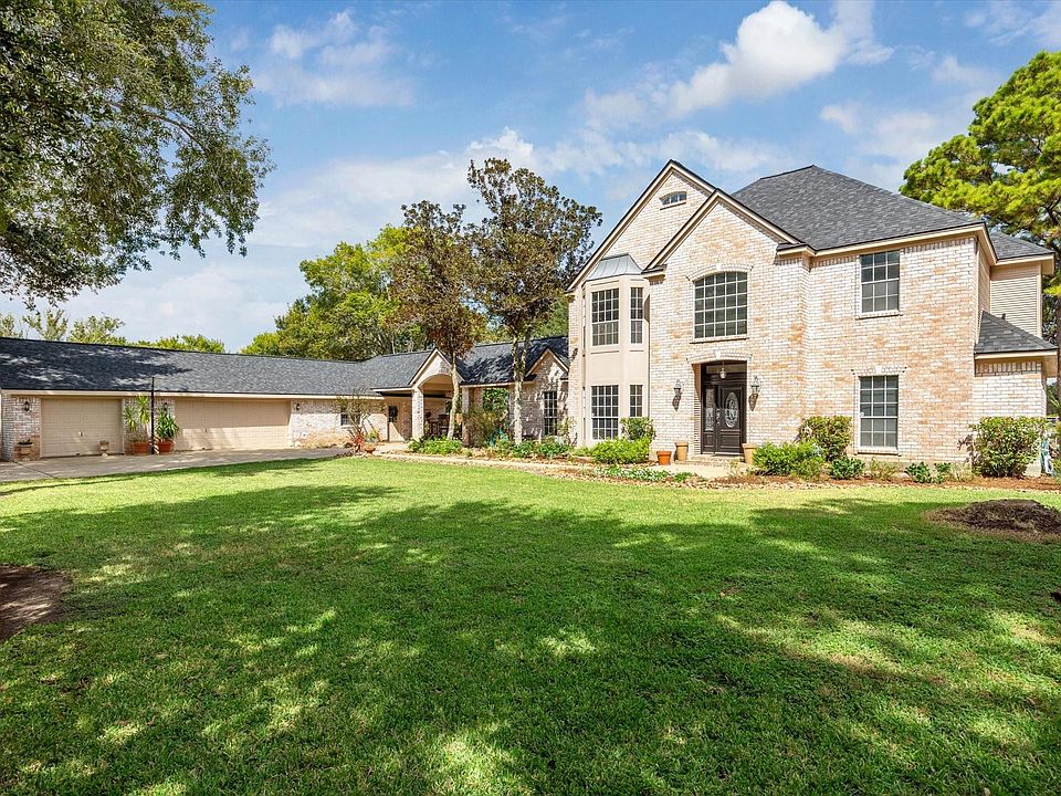 Beautifully maintained custom home on a sprawling acreage lot at 1540 Hastings Friendswood Rd in Pearland. This charming two-story brick home features a 3-car garage, long driveway, and one bedroom conveniently located on the first floor. Inside, enjoy an open layout with elegant finishes, crown molding, and large windows that fill the space with natural light. The kitchen offers granite countertops, stainless steel appliances, and a center island perfect for entertaining. The primary suite includes a luxurious bath with a soaking tub and separate shower. Outside, mature trees, lush landscaping, and a fenced area provide a peaceful country setting ideal for horses or recreation. A detached barn and storage building add versatility, while the garage apartment (1,027 sq. ft.), with a first-floor bedroom and private septic - offers income-producing potential or a guest retreat. Conveniently located near FM 518 and Hwy 35 - truly a rare find in Pearland!