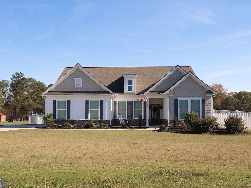 Ranch design loaded with elegant, designer finishes. Farmhouse kitchen boasts 36" cabinets, granite countertops, and large island. Spacious primary suite includes a HUGE primary closet. Primary bath with granite countertops and beautiful tile shower with framed glass. Covered back patio overlooking large fenced in backyard. Home site sits on 2.31 acres on estate sized lot.