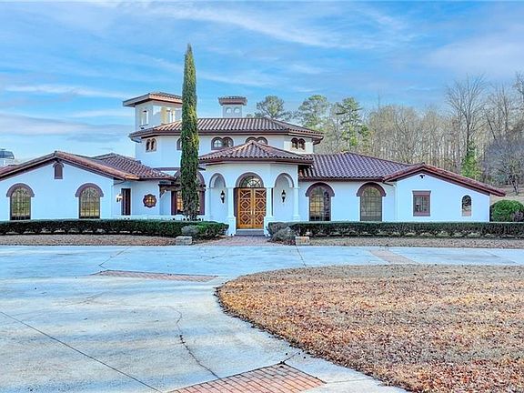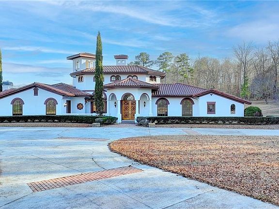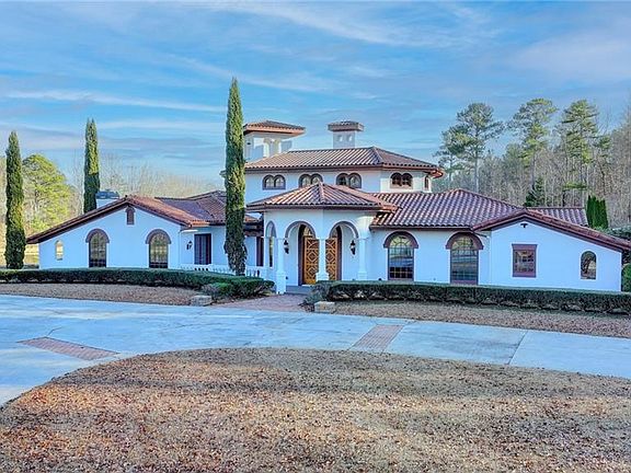 This stunning ESTATE HOME with a PRIVATE LAKE, featuring a meticulously designed Main House Overview: main house with 6,000+ sq. ft. of living space and numerous high-end amenities. Upon entering, custom-carved double wooden entry doors open into a formal solarium-style foyer, which flows into the expansive family room with a cathedral-style ceiling and cedar beams. The room is highlighted by a remote-controlled chandelier and a grand fireplace. Beautiful double doors open to a front courtyard with serene lake views, as well as a massive rear courtyard featuring a water fountain and outdoor rock fireplace. The chef-inspired kitchen is fully equipped with top-of-the-line stainless steel appliances, including a refrigerator, double ovens, microwave, warming drawer, trash compactor, wine fridge, and a Viking gas stove ideal for any culinary enthusiast. Adjacent to the kitchen is a laundry/mudroom and a pantry that spans the length of the home, providing ample storage, a second dishwasher, and a half bath.The left wing of the home includes a half bath for guests, as well as a stately library/office, which can also serve as a 4th bedroom. This space boasts a fireplace, custom bookshelves, captain's paneling, and a private entrance to a patio with lake views. The luxurious primary suite features a sitting area with a fireplace, a private patio overlooking the lake, a wet bar, two custom closets, and a spacious ensuite bathroom with dual vanities, two toilets, a soaking tub, and a separate shower. The hallway, with arched windows and doors leading to the courtyard, connects to two additional bedrooms, each with a private bath one featuring a covered patio with lake views. A dedicated entertainment/media room with a full bar, sauna, and lake views completes the living spaces. Throughout the home, you'll find exquisite tile floors, arched doorways, and elegant entryways, all contributing to the refined aesthetic. Guest House/Office: The guest house or office space offers a full kitchen, living room, two bedrooms, and two bathrooms. An oversized garage provides abundant storage space, and the entire guest house is designed with convenience and comfort in mind. This exceptional estate offers the perfect blend of privacy and luxury, while being conveniently located just a short drive from GA-Hwy 11, Historic Covington, Social Circle, Monroe, and minutes to I-20. This dream property is a must-see schedule your private showing today!