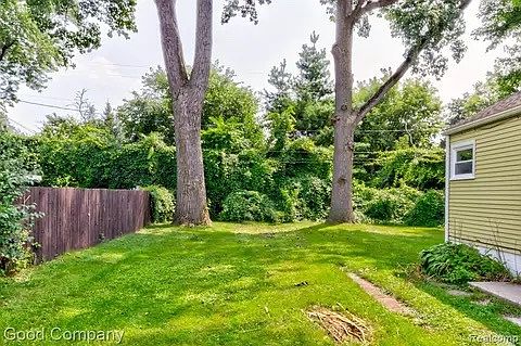 Large double lot with mature trees for summer barbecues or winter bonfires.