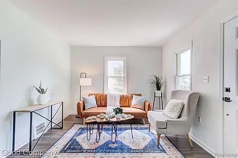 The living space glows with natural light, enhanced by its airy, open design and wide windows.