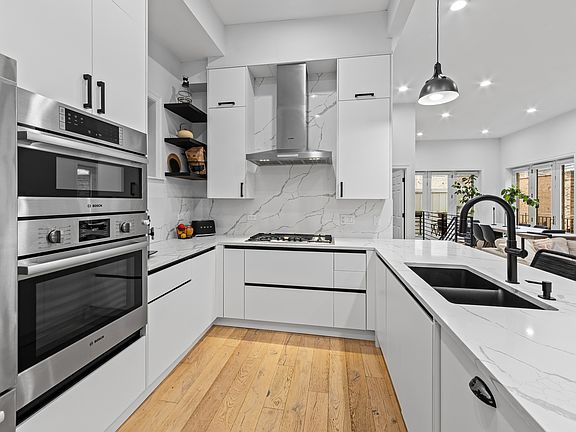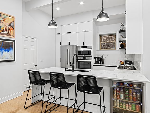 Welcome to Your Dream Home in Wicker Park!Step into this stunningly renovated 3-bedroom, 3-bath duplex that seamlessly blends luxury, function, and style. From the moment you enter, you're greeted by soaring ceilings, abundant natural light, and an expansive open floor plan that creates an impressive sense of space. The spacious living area flows effortlessly into a chef's kitchen designed for both beauty and performance. It features sleek, European-style flat-panel cabinetry, high-end Bosch stainless steel appliances, Quartz countertops with a dramatic waterfall edge, and a striking full-height Quartz backsplash. A thoughtfully relocated laundry room to the lower level allows for the addition of a generous walk-in pantry, and a built-in beverage center at the peninsula makes entertaining a breeze. Adjacent to the kitchen is a dedicated dining space with views of one of the home's two private outdoor areas-perfect for summer gatherings or morning coffee. The main level also includes a large bedroom with ample closet space including a custom overhead storage cabinet to take advantage of the tall ceilings. A full bathroom with a walk-in shower and designer finishes serves this level, offering comfort and style for guests or family. Downstairs, the cozy and inviting family room opens to a second, wraparound private patio, creating seamless indoor-outdoor living. The expansive primary suite is a true retreat, boasting a walk-in closet and spa-inspired bath with dual vanities, heated floors, and a massive glass-enclosed steam shower with body sprays. The third bedroom is also ensuite, featuring a deep soaking tub/shower combo-ideal for any age range. Additional features include garage parking and a location that can't be beat-tucked away on a quiet street in the heart of Wicker Park, just a short stroll to shopping, dining, nightlife, and transit.