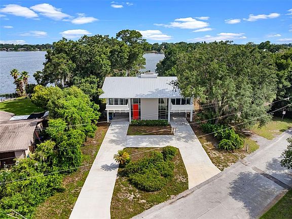One-of-a-Kind Architectural Treasure by Gene Leedy on the Winter Haven Chain of Lakes: Gene Leedy and the Winter Haven Chain of Lakes—an extraordinarily combination and opportunity to own a true architectural statement on one of the most unique water-systems in all of Florida. Known as The Guest House, this Mid-Century Modern masterpiece was designed and built by world-renowned architect Gene Leedy, a founding figure of the Sarasota School of Architecture and a celebrated innovator in Florida modernism. Set quietly at the end of a peaceful cul-de-sac, this lakefront home on picturesque Lake Mirror masterfully blends bold modernist design with the natural beauty of one of Florida’s most iconic waterfront settings. Gene Leedy is celebrated for his pioneering use of pre-cast concrete structural systems in both residential and commercial architecture. His instantly recognizable style is defined by exposed structural elements, Ocala concrete block construction, enclosed courtyards, sliding glass doors, and passive-design strategies such as cross-ventilation, deep overhangs for sun protection, and natural day-lighting. The Guest House embodies many of these timeless hallmarks and stands as a dream realized for followers of the Mid-Century Modern movement—a living, breathing work of art curated by Leedy himself. From the iconic precast concrete double “T” roof system to minimalist geometry and walls of glass, every detail of the home reflects his enduring architectural brilliance. Spanning two open levels, the home offers dual living rooms, 3 bedrooms, 3 bathrooms, and multiple flexible-use spaces—all bathed in natural light and designed to celebrate the surrounding landscape. Towering two-story windows at both the front entry and central atrium create dramatic symmetry and connection between indoor and outdoor living. Elevated balconies extend from each upstairs living space and every bedroom, offering tranquil treetop retreats. Each bedroom is outfitted with integrated closet organizers, eliminating the need for dressers and preserving the clean, open aesthetic. At the heart of the property, a heated, salt-filtered pool is surrounded by covered patios that showcase Leedy’s double “T” beams as architectural sculpture. The backyard is fully fenced for privacy and function, while at night, dramatic exterior lighting transforms the home into an inviting backdrop for unforgettable entertaining and meaningful conversation. Set directly on Lake Mirror—part of the famed Winter Haven Chain of Lakes—the property offers direct waterfront access, as well as easy boat launching from a nearby community ramp. Spend your days boating, skiing, paddleboarding, or fishing across 20+ interconnected lakes, then dock at one of many waterfront restaurants to enjoy live music, food, and sunset drinks. Additional highlights include two covered carports, a circular drive for ample guest parking, solar panels, tasteful modern updates, and low-maintenance landscaping. Centrally located between Tampa and Orlando, you’re minutes from international airports, premier medical facilities, boutique shopping, and top-rated dining. Whether you're seeking a full-time residence or a seasonal design escape, The Guest House offers a once-in-a-lifetime opportunity to own a legacy property that honors timeless design, natural beauty, and architectural heritage. Schedule your private tour today and experience the artistry, serenity, and lifestyle of life on the Winter Haven Chain.