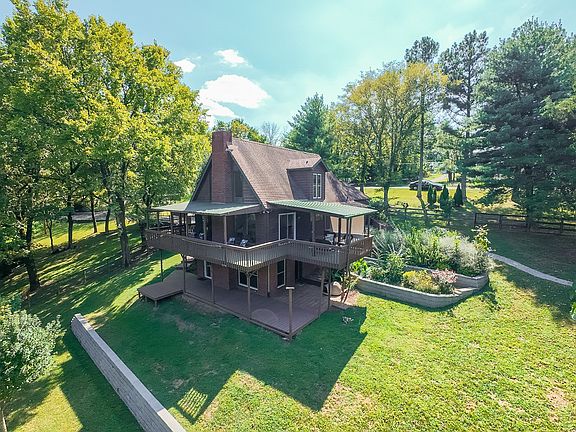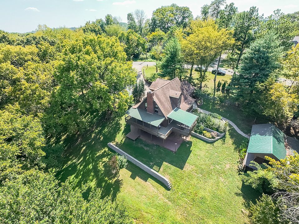 Gorgeous cabin on private, tree-lined 1.89 acre park-like setting with terraced garden. Renovated, with almost 2,000 sqft, flex space, 3 beds, and 3 baths, there's room to truly spread out! Enjoy refinished oak flooring and new carpet, with new tile in wet areas. Open floor plan with 1,000sqft of covered porches. Windows and doors are new as well! Spacious kitchen provides quartz countertops, upgraded cabinetry and newer appliances. 20x20 outbuilding offers electric & HVAC-perfect for a studio or workshop. Garden shed with electric, plus detached 2 car garage.
