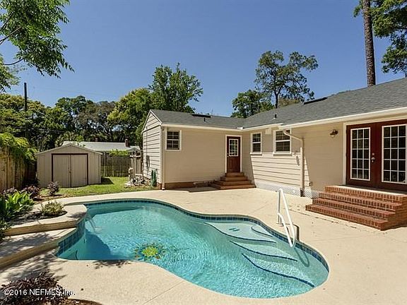 Exceptional rehabbed POOL home with dual master suites. Fabulous wood floors in living areas. Pool has great water feature. One master suite has a zero transition shower and the other master has a walk-in shower and a Jacuzzi tub. Lovely living room with wood burning fireplace. Home on oversized triangular lot close to US 17 by FSC. NEW hot water heater. NEW interior paint throughout! NEW exterior paint!