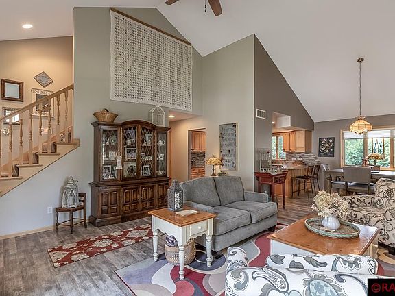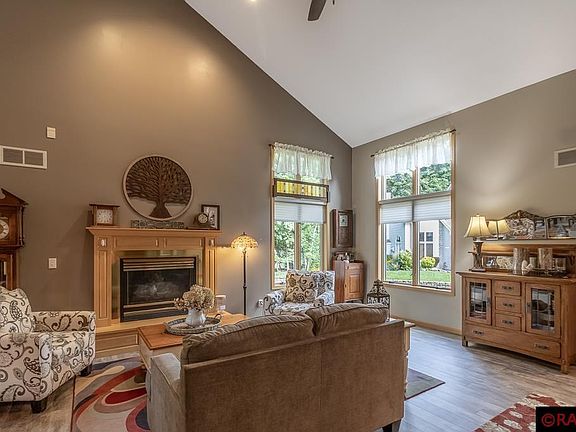 Tucked away in the peaceful, wooded surroundings of upper North Mankato, this impeccably maintained 3-bedroom, 2-bathroom townhome offers a lot and could be exactly what you're looking for! Perfect for the young at heart, but age of 50 requirement.  Step into an expansive open-concept living, dining, and kitchen area featuring a tall vaulted ceiling and beautiful luxury vinyl plank flooring. Enjoy the warmth of a gas fireplace in the living room, perfect for relaxing evenings. The informal dining space offers stunning views of the beautifully landscaped backyard. The kitchen is a chef's dream with granite countertops, plenty of cabinet space, updated appliances, a nice backsplash, and recessed lighting. Additional seating is available at the breakfast bar. French doors off the dining area lead to a vaulted sunroom with a glass sliding door to the patio and screenhouse. Spacious primary bedroom with three closets and private access to the 3/4 bathroom. Conveniently located on the main level is the laundry room with cabinets, a coat closet, and access to the double stall garage with a finished floor. The open staircase takes you to the upper level with two large bedrooms with tall, vaulted ceilings and a walk-through full bathroom with a double sink vanity. The hallway provides a storage room with loft space and an additional hall closet with a step-down area, perfect for storage or a play nook. The lower level offers a spacious family room with ample space for recreation. You’ll appreciate the huge utility room, perfect for a home gym or crafting, and it’s plumbed for a bathroom. This home is so well cared for and located in such a great area, offering a private backyard and a perfect blend of indoor and outdoor living spaces. Don't miss the opportunity to make this beautiful townhome your own!