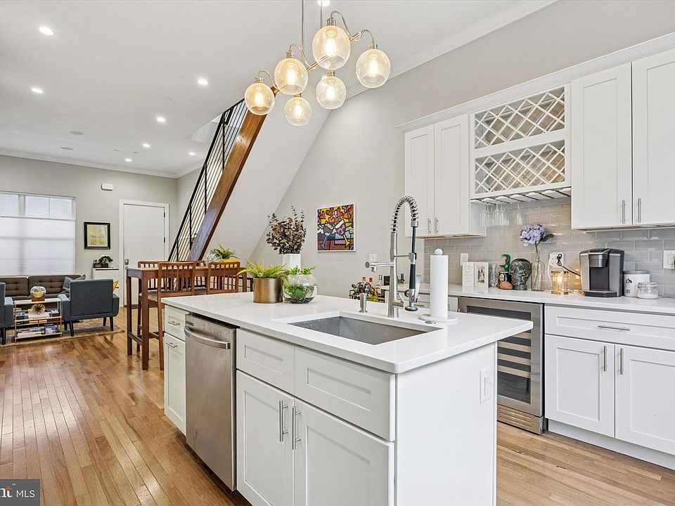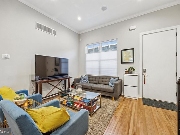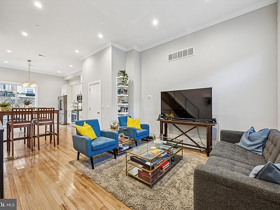 This stunning 3-story townhome checks every box: private deeded parking, incredible natural light, and high-end finishes throughout. Located on the border of Point Breeze and built in 2021, the home offers 4 bedrooms, 3.5 baths, a finished basement, and 6 years remaining on its tax abatement. Step inside to be greeted by soaring 12-foot ceilings and the warmth of hickory hardwood floors that set the tone for the luxury within. The open main level offers a wide 16-foot floor plan, seamlessly flowing from a spacious living area to a bright dining space and into the chef’s kitchen. Here, you’ll find shaker-style cabinetry, quartz counters, a contemporary backsplash, oversized island seating, a wine cooler, and modern lighting. Unlike most in the development, this home also features an upgraded first-floor powder room. Sliding doors lead to a private rear patio perfect for grilling or al fresco dining. Upstairs, two spacious bedrooms with generous closets and natural light flank a modern full bath. The third level is a dreamy primary suite with a walk-in closet, bay window, and spa-like bath featuring a soaking tub, glass-enclosed rainfall shower, and double vanity. A wet bar with a second wine fridge makes entertaining easy, whether in your suite or on the expansive roof deck with panoramic skyline views. The fully finished lower level adds even more flexibility with a bonus bedroom, full bath with a floor to ceiling glass panel, and storage. This home is also future-ready, outfitted with hardwired speakers and Bluetooth capabilities for a seamless smart-home experience. Outside, you’ll love not only your private deeded parking, but also the abundance of additional guest parking under the 25th Street overpass. The location is unbeatable: walking distance to the Schuylkill River Trail and Grays Ferry Crescent Park, connecting all the way to the Art Museum for morning jogs or evening bike rides. Enjoy coffee at nearby Grays Ferry Coffee Shop, playtime with your pup at Lanier Dog Park, and watch your equity grow as new homes, restaurants, gyms, and shops continue to rise in the neighborhood and along Washington Avenue. Don’t miss the chance to own a home that blends luxury, lifestyle, and long-term value. Schedule your showing today!