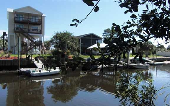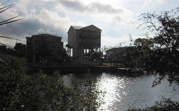 Awesome Views of the water from EVERY room, designed and custom built with 4 stop elevator, 4 covered porches, Mezzanine, 2 storage rooms, works well for 2 families and/or rental. Home also features Corian countertops, stainless appliances, laminate wood floors, split plan with master bedroom downstairs, 4th bedroom could also be family/game room or office, and views from every room! Park your boat in your backyard, skip to the beach and enjoy the park on the beach, ride your bike or golf cart. Great place to live full time or perfect weekend getaway! MAKE OFFER!
