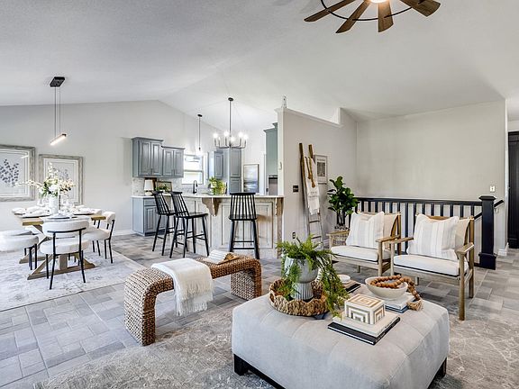 Step inside this 4bed 3 bath home and immediately feel the warmth of this recently updated home. The entry opens into a bright, open-concept living area where a cozy gas fireplace anchors the room, sunlight bounces across fresh tile floors, and the kitchen shines with quartz countertops and newer stainless appliances. The heart of the home flows seamlessly - from cooking in the kitchen, to meals in the dining space, to evenings on the composite deck overlooking the pond while watching the beautiful Kansas sunset and deer wandering near the pond. Upstairs, new carpet (2025) leads you into spacious bedrooms - each large enough for Queen/King beds and full sets — while the master suite is a retreat of its own: Deck access, Pond views and a spa-like bathroom with a huge brand new (2025) walk in tiled rain shower, jacuzzi tub, and double vanity with granite counter top and vessel sinks. Downstairs, the walk-out basement feels like its own wing of the house. Movie nights come alive on the projector wall, and the oversized fourth bedroom could double as a guest suite, office, teen space, or even be split into a 5th bedroom (electrics already set up for the split). A full bath and generous storage make it practical as well as inviting. Outside, enjoy evenings on the deck or let kids and pets play in the yard (there is underground pet fencing), fish in the pond or roast some marshmallows for smores. The oversized 3-car garage fits a full-sized truck + 2 full sized cars, and the lawn stays lush thanks to well water irrigation. Recent upgrades include: Roof (2021), Water heater (2023), Composite deck (2020), 2024 Kitchen Quartz countertops + new appliances, Modern tile flooring (durable, low-maintenance, pet- & kid-friendly). Master Bathroom Suite (2025).
