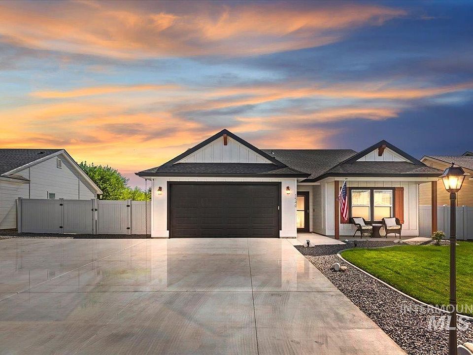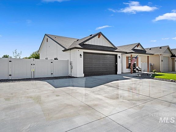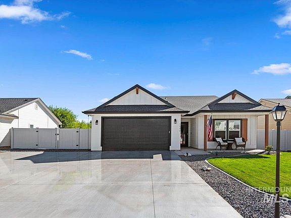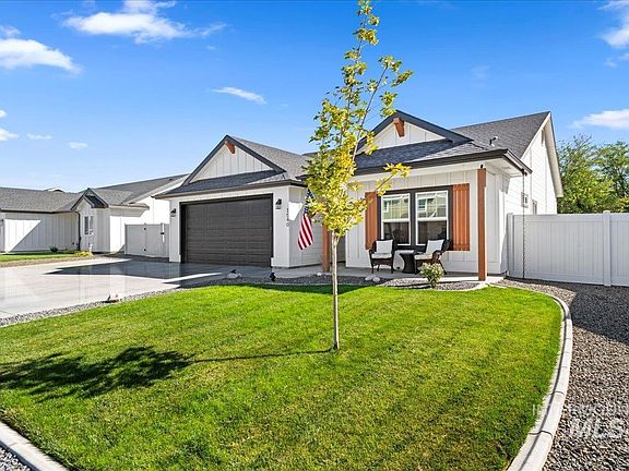 Huge price improvement!!! Best priced home in Weiser! This beautifully finished home offers a spacious open layout with 9 ft ceilings, an upgraded lighting package, and LVP flooring throughout, complemented by soft carpet in the bedrooms and a fully insulated master bedroom. The kitchen and bathrooms feature soft-close cabinetry and granite countertops, while dual vanities and fog-free mirrors add both style and convenience. An insulated garage, ample RV parking with an oversized driveway, and fully landscaped front and back yards provide comfort and practicality. Enjoy outdoor living year-round with a covered front porch and back patio. Thoughtfully designed and move-in ready, this home blends modern upgrades with timeless appeal. Includes a 3 yr home warranty. 1% lender credit* available with preferred local lender. Lender credit is based on loan amount and can be applied towards rate buy-down/prepaids and/or closing costs.