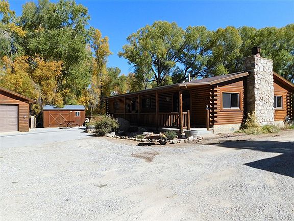 This one of a kind, beautiful, serene, 2.72 acre property has it all. Remodeled log home, horse property set up with fencing and loafing shed, plus an adjudicated spring for the pond and other useage, and an irrigation ditch flowing through. It is located across the street from the Collegiate Peaks Golf Course, and only about a mile to downtown Buena Vista. The newly stained home has a huge covered porch on the front of the house and a covered porch on the back of the house. Then add huge trees, grassy lawn and plenty of additional parking space beside the detached 2 car garage. There is also a 12 x 16 storage building. The domestic well permit allows watering of livestock and lawn and garden. The 3 bedroom, 2 bath, 1859 SF, ranch home has an open living room and dining room with an impressive stone fireplace and the entire home has been remodeled. NO Homeowners Assn. and NO Covenants.