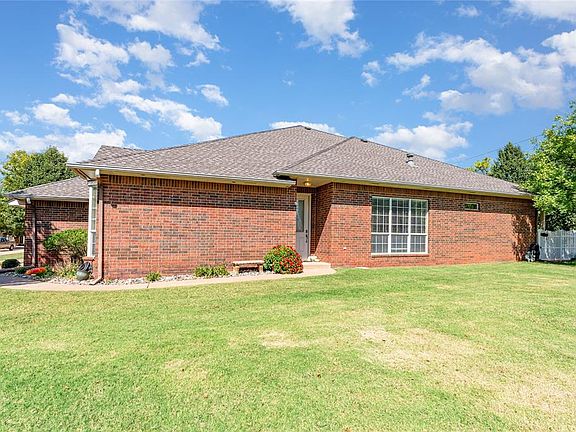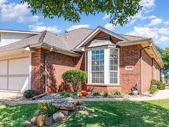 Gated! Edmond Schools, Butterfly Creek! Gorgeous, spacious home with 3 beds. Front bed has lovely bay window and generous size. Could be a study or flex space. Light and airy large living with builtins, gas log fireplace w floor-to-ceiling stone surround. Rich wood LVP flooring and crown molding. Newer updates include LVP flooring, ceiling fans, designer paint colors, granite, backsplash. Kitchen has great space, lighted pantry, lots of cabinet food prep space. Breakfast bar, eat-in kitchen. Kitchen has an area for coffee bar with glass cabinet door. Newer SS appliances. Utility has extra large SS sink, cabinets and shelves. Primary bedroom has gas log fireplace with newer floor-to-ceiling stone surround. Primary bath has shower, jetted tub, walk-in closet, dbl sinks, extra storage. Primary has access to landscaped back yard. Hall bath has designer paint color, dbl sinks, shampoo shelf in combo tub/shower.
