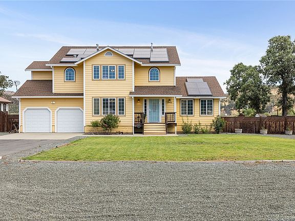 Situated just a few minutes from the downtown, surrounded by picturesque views of Mount Saint Helena and Cobb. Located down a private country lane at the end of a peaceful cul-de-sac. You'll enjoy a covered front porch that leads to the foyer with a formal staircase. The great room, with an open living room and kitchen that looks out to the back of the property, great for indoor and outdoor entertaining. The 2nd floor offers the primary suite at the front of the home with en suite bathroom and walk-in closet, followed by 3 bedrooms and 2nd bathroom. Features include luxury vinyl flooring throughout, and tile flooring in the kitchen and bathrooms. There is a partially covered back deck with lighting and ceiling fans to enjoy year round. The backyard has raised garden beds, a chicken coop and plenty of space for a possible pool, BBQ area, dogs, horses or a small hobby vineyard. Ready to live off the grid? The home includes solar panels plus two Tesla batteries. Seller is motivated and will entertain helping a buyer with a closing cost credit or to help buy down the interest rate.