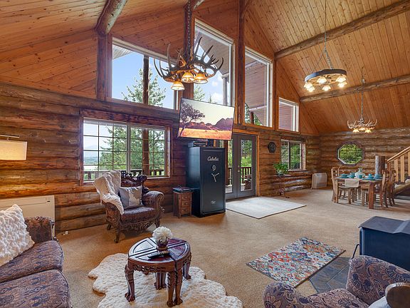 Bordering State land; ride from your back yard on miles of trails! True North Idaho living. A beautiful log home on 10 forested acres. Solitude with breathtaking views of Hauser Lake and the mountains beyond, plus the convenience of being just minutes to town. At over 3000 sq ft, the large floor plan has a two-story great room with large windows and open log detail above. The kitchen is roomy with plenty of workspace, granite countertops, and a breakfast bar. Upstairs, you'll find a wonderful loft with plenty of square feet to be a bedroom or family room, and a deck to enjoy the expansive views. A large master suite and second bedroom are on the main floor with two beautifully appointed bathrooms.The deck, covered porch and outdoor spaces have been designed for the views!