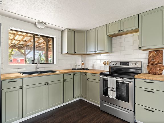 Adorable ranch situated on large 1.47 acre lot. New kitchen, flooring, light fixtures. Newer roof, plumbing, water heater & more. Residence + barn + large shop with plenty of room for visitors. Use as primary residence or get creative with the property that is enveloped by peaceful farmland + many fruit trees onsite (blueberry, pear, & more). Gardening, farming, retreat, wellness getaway, wedding venue & more. Bring all of your business ideas (& do your due diligence).