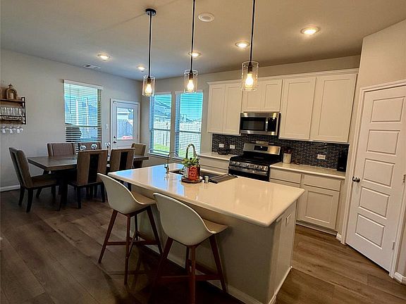 Modern mosaic backsplashLarge lotLvp wood flooringExtended covered patioOmegastone countertopsSeparate tub and showerGe stainless steel appliances