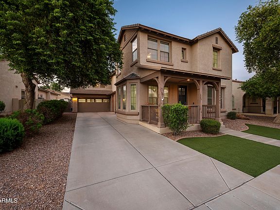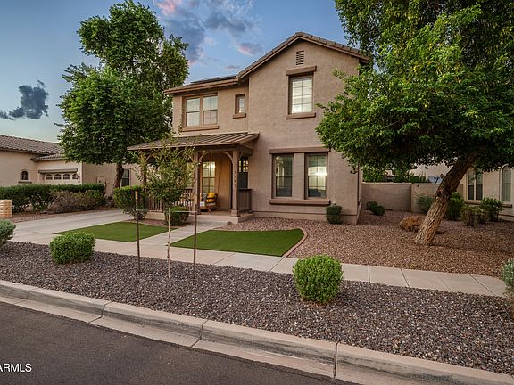 Step into sophistication in this beautifully upgraded 4-bedroom, 2.5 bath sanctuary in the heart of Marley Park. From the moment you arrive, the curb appeal draws you in - cozy swing, synthetic turf front & back, colorful desert landscaping, and clean modern lines. Inside, find a bright and open layout with tile floors, crisp white cabinets, granite countertops, and stainless-steel appliances. The solar panels (fully paid) make this home as efficient as it is stylish. Upstairs, the versatile loft has been adapted as an extra master suite, while the backyard beckons with a covered patio and shimmering pool. With a 3-car garage, generous lot, and sought-after neighborhood location close to schools and freeway access, this is the package you've been waiting for.
