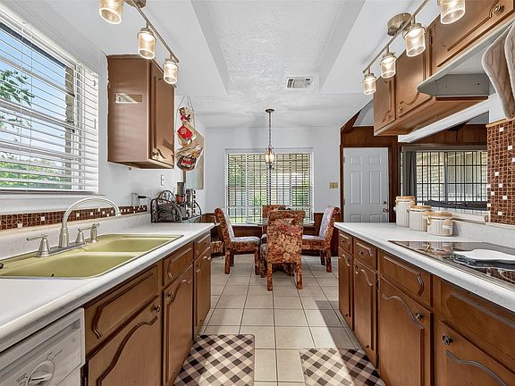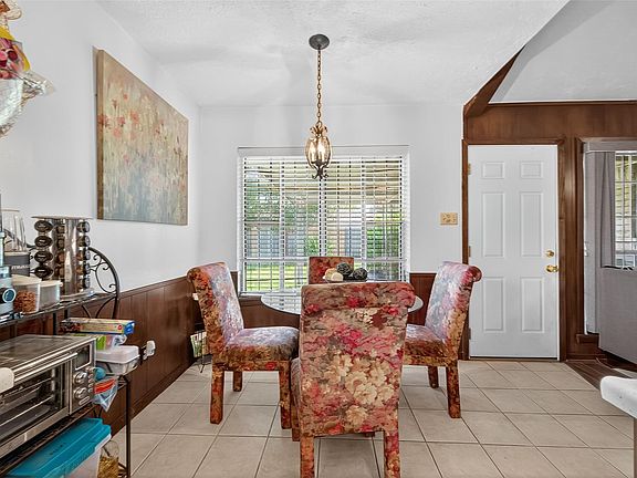 Charming design & thoughtful details abound in this Briargate corner-lot home. Featuring wood-paneled walls, exposed beam ceilings, and a white brick fireplace, this single-story residence combines classic charm with modern comfort. A spacious covered front porch with a storm door welcomes you, complemented by a privacy brick wall enclosing a tidy mulched garden bed at the side of the main entrance. Each bedroom offers a unique style, while the open kitchen and breakfast nook flow seamlessly to the casual living areas, ideal for gatherings and relaxed family time. The covered patio overlooks the expansive backyard—perfect for al fresco dining or quiet relaxation. Located in the established Briargate community, with easy access to parks, schools, shopping, Hwy 90, and Beltway 8, this home offers a comfortable, stylish lifestyle in a prime location.
