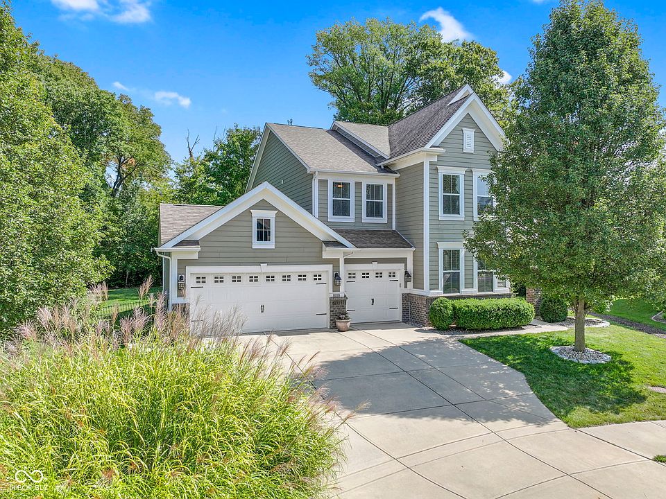 Perfectly situated on a large, premium, wooded, cul-de-sac lot in Fishers, this 4-bedroom, 2.5-bath home features a 3-car garage and full unfinished basement. Architecturally inspired by historic style, this Greek Revival design features a covered porch leading to an interior designed to adapt to your lifestyle, now and in the future. The welcoming foyer leads past a versatile retreat, perfect for a home office, library, or study space. The open-concept layout flows seamlessly into the living and dining areas, making it ideal for family gatherings or entertaining. Enjoy cozy fires by the gas fireplace with stone surround and raised hearth in the family room. Cook and entertain in style in the gourmet kitchen with walk-in pantry, granite countertops, gas cooktop, built in double oven and a large island perfect for meal prep or casual dining. Upstairs, you'll find a loft that is perfect for crafting, gaming or studying, a convenient laundry room with built in cabinets and 4 large bedrooms including the primary suite boasting a tray ceiling, serene views of the woods, large walk-in closet and large private bath with deluxe shower and dual sink vanity. The full, unfinished basement has a wet bar rough-in, full bath rough-in and egress window making it perfect for future expansion with an entertainment area, play space and guest suite. The spacious 3-car garage provides ample storage for vehicles, tools, and outdoor gear. Outside, the large, wooded lot provides privacy with no neighbors behind you and ample space for playing ball, entertaining on the large deck, or simply soaking in the natural beauty of your private wooded oasis. Located in the sought after HSE school district, this home is just minutes away from shopping, dining and entertainment at Hamilton Town Center and only 1 mile from Geist Reservoir. Don't miss this opportunity to own a home that truly has it all!