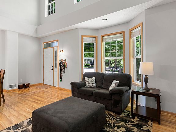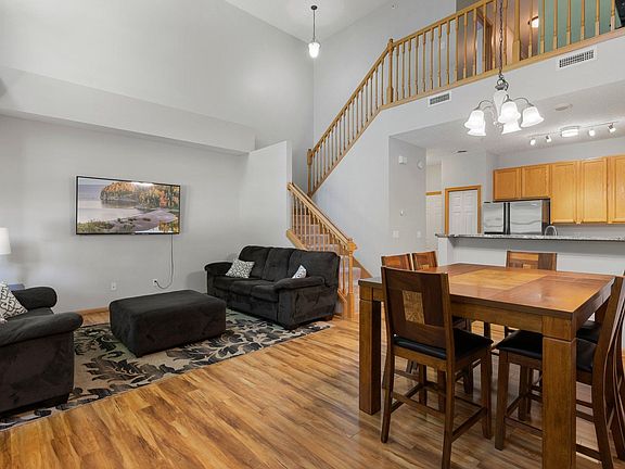 Welcome to the demanded Legacy Square of Apple Valley! Architecturally significant & simply different from the rest of the drab townhomes you'll see, this London Flat style rowhome is the absolute heart of the trendy part of town. Close to every amenity from shopping to restaurants to parks to trails and easy to commute from - you'll love the location. Cool, rear entry private 2-stall garage leaves the front of the home to show off its back clad, bay window front elevation & cute + relaxing front patio. Come inside to be instantly greeted with soaring 2 story ceilings & an open, airy floor plan tying the kitchen + living room area together {great for entertaining}. Updated kitchen showcases stainless appliances, granite counters & cool bar height area for stools. Durable, laminate "Pergo" floors flow through the main level. 2 bedrooms, an updated full bath, a versatile loft space & laundry upstairs. Strong, well-established association! Top ISD196 schools! A true turn-key gem awaits.