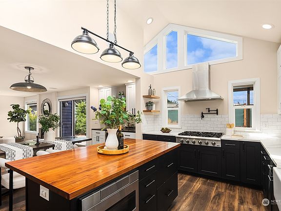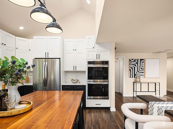 Remodeled rambler on a corner lot just blocks from Microsoft. Designed for entertaining, the open layout flows into the outdoor spaces. Updated kitchen is a chef’s paradise, including butcher-block island, new stainless steel appliances, pot-filler over the gas stove, dry bar with bev, fridge and a walk-in pantry. Vaulted ceilings throughout. Updated primary bathroom w/heated floors. Fourth bedroom could be home office. Smart home features include Ring security and whole-house audio w/separate zones. Fully fenced backyard with a covered outdoor kitchen, a large playset, and fruit trees. Spacious garage w/attic storage. Lake Wa Schools. Mins to Microsoft, downtown Redmond, Marymoor Park, and 520, a perfect spot to call home.
