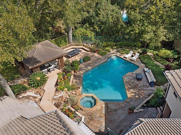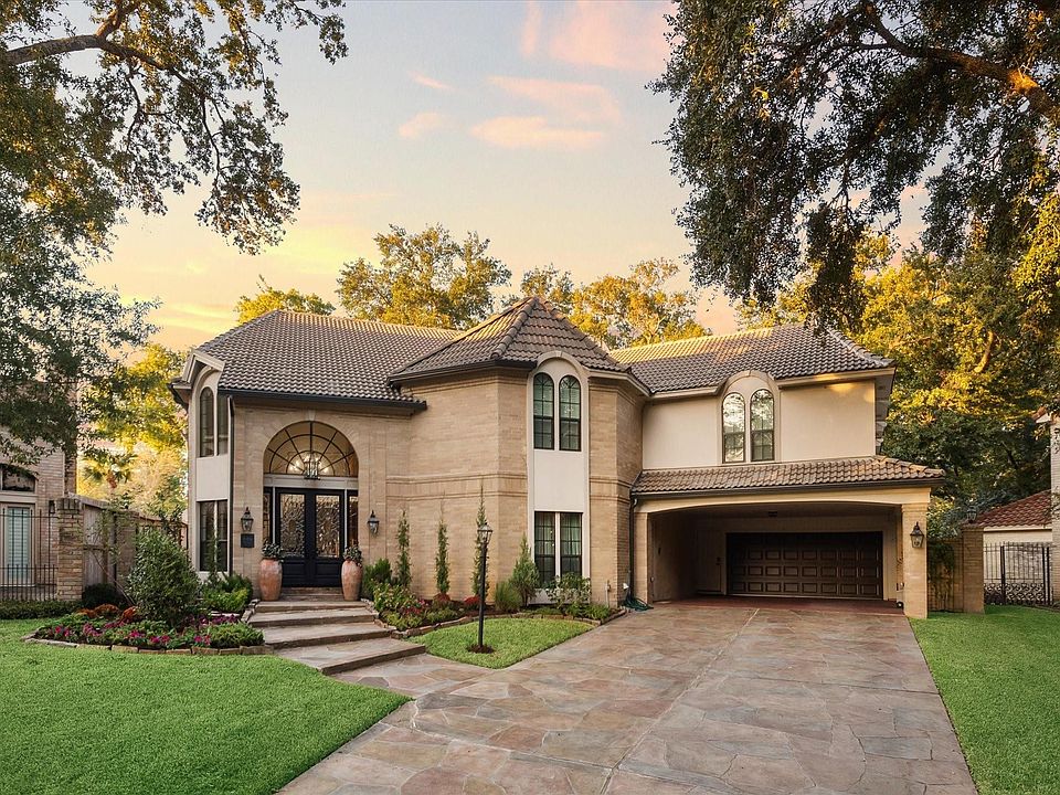 Discover a home of unparalleled elegance and refined craftsmanship in one of West Memorial's most sought-after neighborhoods. This newly remodeled residence is designed for luxurious living and entertaining, with every detail meticulously curated. Step into a private backyard retreat, complete with a heated pool and spa, gazebo with an outdoor kitchen, and serene river rock brook with a waterfall perfect for gatherings or relaxing in nature-inspired tranquility. Inside, the unique round den with custom millwork and wet bar sets the tone for refined leisure, accompanied by a game room with its own wet bar, a European-inspired kitchen with sleek cabinetry, and large walk-in closets with built-ins throughout. Every bathroom has been exquisitely remodeled.Energy-efficient tankless water heaters and a durable tile roof. Situated in the intimate Memorial Thicket, enjoy the added benefit of a manned security gate, scenic walking trails, and easy access to major thoroughfares.