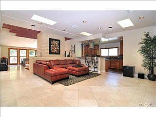Stunning Contemporary Home by Architect Edward Fickett on a prime location in hills above prestigious Sherman Oaks. The lines of the architecture, and organic design feature 4 spacious bedrooms (one bedroom currently used as a gym) travertine stone flooring, 11' ceilings, skylights with rain sensors, 2 fireplaces, surround sound, wood framed windows, smart home capabilities and an artistic paint texture. The kitchen boasts custom cabinetry with designer touches, granite counters, Viking appliances, double oven with breakfast bar that opens to the expansive family room. Generous master retreat includes a private fireplace, romantic master bath and spa tub with oversized walk-in closet finished with custom organizers. A series of sliding doors open to the backyard to highlight our California lifestyle. The private backyard is ideal for entertaining with separate seating areas and BBQ area that overlooks the sparkling pool. A grassy side yard with mature fruit trees (avocado and citrus) allows for space and additional privacy. Just minutes from the Westside and located in the Roscomare School District (based on space availability). Own a piece of Hollywood history...previously celebrity owned home! Brokered And Advertised By: Berkshire Hathaway HomeService Listing Agent: Kathleen Finnegan