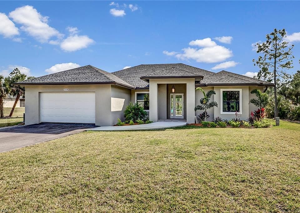 GORGEOUS HOME WITH LOADS OF UPGRADES and situated on a LARGE 2.34 ACRE LOT. This 3 Br+den, 2.5 bath home has an Expansive floor plan. Stunning Ultra Modern Kitchen with Custom cabinets, granite counter tops, tile backsplash, Stainless Steel appliances with cook top, wall oven and built-in microwave. Large island with breakfast bar offering plenty of cooking space for the family chef and all opening up to the formal dining area and Family room. Boasting Attractive wood plank tile flooring throughout, tray ceilings with tongue & groove. Crown Molding. Master bedroom closets have modern Farmhouse-Style Barn Doors that lead into a large master bath with dual sinks, granite counters, soaking tub and frameless shower enclosure! Pocket sliders lead out to Oversized Lanai. Additional features are Irritation system, camera pre-wiring. NO HOA fees to worry about. Located close to the New Publix Shopping Center.