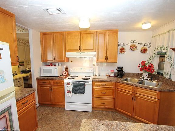 Located in the much desirable 55+ community of Sebring Falls where you own the land - no lot rent here and low HOA fees $40 per month. Enjoy a community pool, shuffleboard courts and clubhouse. This home is one of the few with a garage which the current owner uses as additional living space as a mancave and she-shed! The home flows nicely from the kitchen to the dining room and to the living room. Sliding glass doors open the front porch from the living room. The master bathroom is spacious and the master bathroom has a step-in shower. The home has lots of updates including laminate wood flooring in the dining room and kitchen. You will love the office desk space in the hallway for your home office. The master bathroom and hall/guest bathroom both have a new vanity. All the interior doors have been replaced with six panel doors and new lever door handles. In addition to the garage there is a carport and covered golf cart port. The roof is metal. The front porch has an insulated ceiling, front awning and side vinyl window The plumbing is new throughout with Plex plumbing. The water heater has been replaced. This home is the perfect winter home to escape the snow - or a great retiree option for year round living.