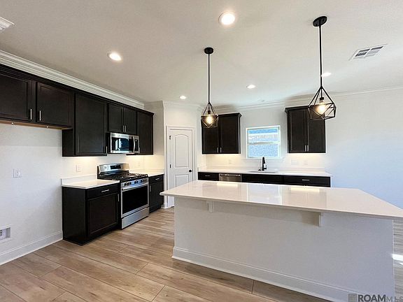 Awesome builder rate and FREE window blinds (restrictions apply)! The COGNAC V B in Fairview Gardens community offers a 4 bedroom, 2 full bathroom, open and split design. The community features lighted sidewalks, a lake, is serviced by the Zachary school system, and is conveniently located near dining, shopping, entertainment, medical facilities, YMCA, LA Art and Science Museum, the Baton Rouge Zoo, historical sites, and so much more! Upgrades for this home include quartz countertops throughout, a gas appliance package, undermount cabinet lighting, LED coach lighting on each side of the garage, and more! Features: double vanity, garden tub, separate shower, linen closet, and walk-in closet in the primary suite, a kitchen island overlooking the living room, walk-in pantry, mud room with boot bench, covered front porch, covered rear patio, recessed can lighting, undermount sinks, cabinet hardware throughout, ceiling fans in the living room and primary bedroom are standard, a smart connect wi-fi thermostat, smoke and carbon monoxide detectors, post tension slab, automatic garage door with 2 remotes, landscaping, architectural 30-year shingles, flood lights, and more! Energy Efficient Features: a tankless gas water heater, a kitchen appliance package, low E tilt-in windows, and more!