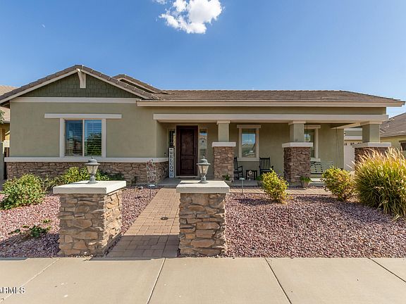 Beautiful single-level 4 bed, 4.5 bath home in South Chandler. Bright open floor plan with wide hallways, great room, and multi-slide doors to an extended patio and gas fire pit with stone accents. Gourmet kitchen with large island and custom finishes. Split layout features a luxurious primary suite with soaking tub, dual shower heads, and walk-in closet. Each bedroom has its own bath and walk-in closet. Private guest suite ideal for MIL setup. Oversized laundry with sink and custom cabinets.