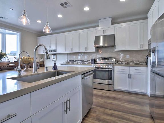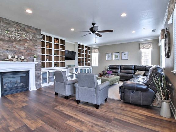 Don't miss this spectacular 4 year new Gilroy home! This gorgeous home features 5 bedrooms plus an open loft/bonus room area; 3 full baths; gourmet kitchen with breakfast nook, bay window, large center island & breakfast bar, loads of white cabinets, quartz counters & custom tile backsplash, stainless steel appliances and pantry; expanded living room with stone fireplace & built in cabinetry; separate formal dining room; downstairs bedroom & full bath; master bedroom suite with walk-in closet & large master bath with dual sink vanity, stall shower & separate tub; spacious backyard; other features include crown molding, double pane windows, raised panel doors, central forced air heating & air conditioning, recessed lighting, solar power (owned), 2 car garage, 7,795 SF lot and much more!