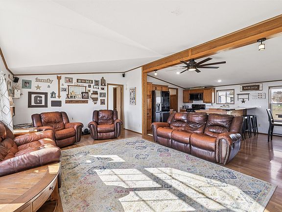 Endless possibilities on nearly 5 acres of peaceful countryside! This 3-bedroom, 2-bath manufactured home sits on 4.98 acres off a private drive, offering beautiful views and plenty of room to enjoy country living your way. With no covenants or restrictions, you’re free to bring animals, build a dream home, add a shop, or simply enjoy the open space. The home features an open layout with updated flooring, vinyl siding, and an asphalt roof for easy maintenance. Acres of invisible pet fencing is already installed, and the mix of open land and mature trees provides the perfect blend of usable ground and natural beauty. Just under 30 minutes to Jordan Creek Mall, this is a rare opportunity to own an acreage close to town with room to grow and limitless potential!