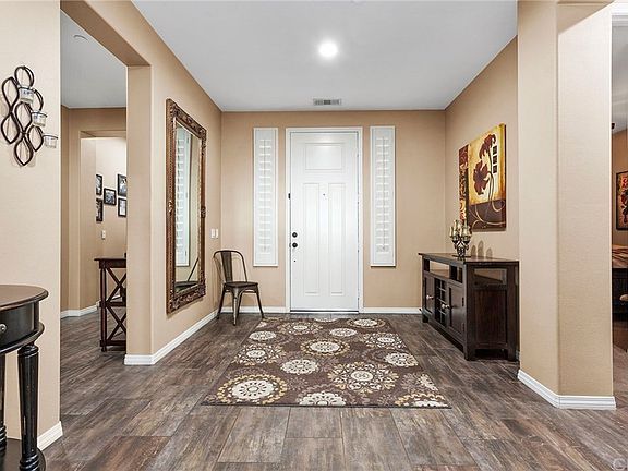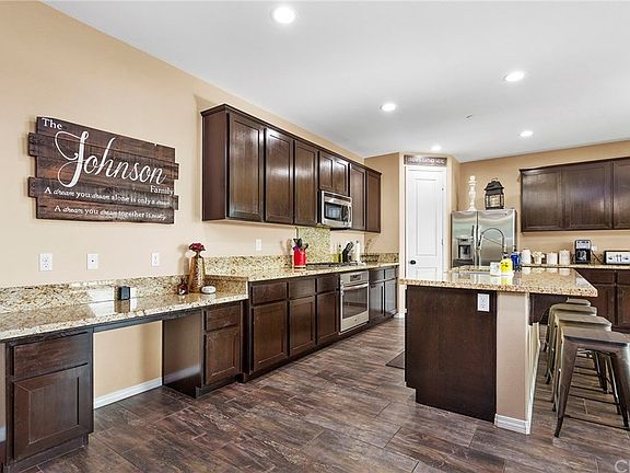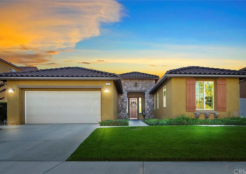 Highly desired single story home with over 2400 sq ft of living space in a sought after Redlands gated community. This home features 4 Bedrooms, 2 ½ baths and 3-car tandem garage. Dramatic entryway leads you into the large Great Room and Kitchen that includes granite countertop with tons of upgraded cabinets you have to see to believe! Upgraded Tile flooring sets this home apart from the rest! Large Kitchen Island is the center point perfect for family gatherings. Master bathroom includes granite counters, separate shower and a large soaking tub with huge walk in closet! Convenient laundry room with Upper and lower cabinets. Entertain your guests under the large patio with amazing sunset views over the top of the orange groves.